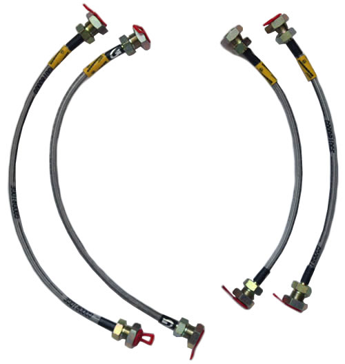 Kit comprises 2 only 4 pot calipers, 2 ventilated discs, full set high performance pads, stainless brake hoses and all fittings.